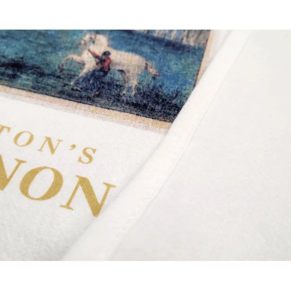 Each towel displays a reproduction of the East front of the Mount Vernon mansion overlooking the Potomac river with George Washington’s Mount Vernon printed below picture.Â