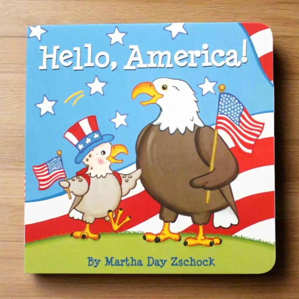 Hello, America! Board book by Martha Day Zschock- Copyright 2012 – ISBN 978-1933212883.