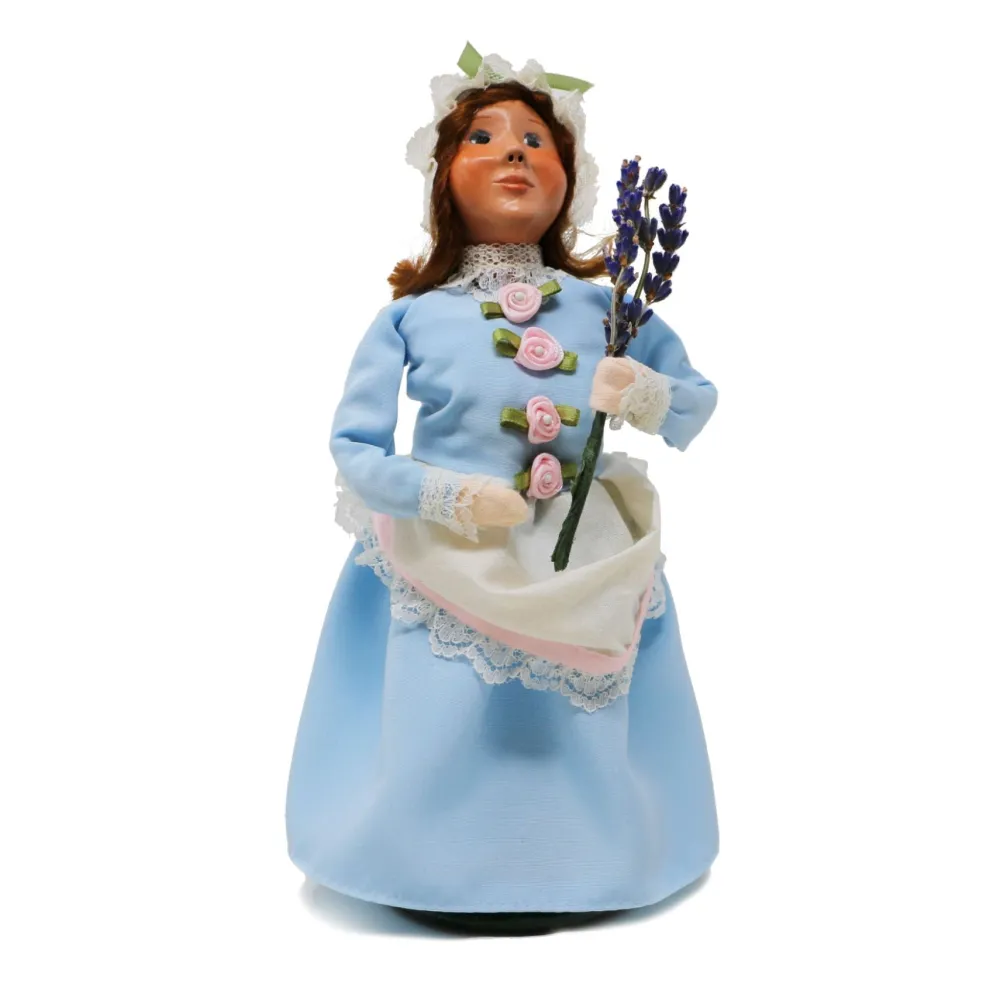 This new limited edition Byers’ Choice Nelly caroler features a sprig of lavender and a beautiful colonial blue dress and bonnet. Welcome Nelly and Washy to your home this holiday season!