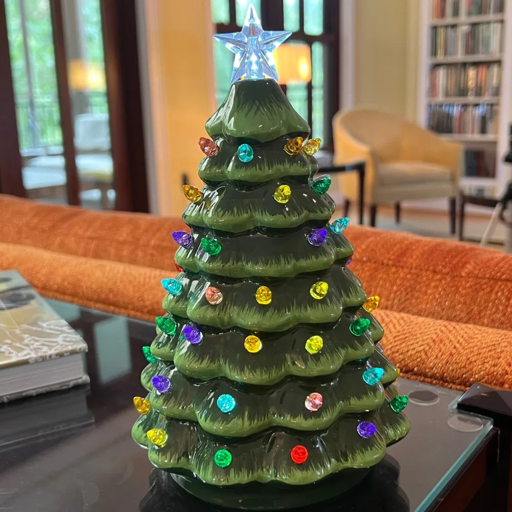 Step into the enchanting world of the Ceramic Christmas Tree Night Light, where nostalgia meets modern charm. Carefully crafted with intricate details, this ceramic masterpiece features delicately hand-painted branches adorned with miniature light bulbs that softly illuminate the night, casting a cozy and inviting ambiance. At the top, a clear star symbolizes the hope and joy of the holiday season, shining brightly. Available in two sizes, our tree accommodates both intimate spaces and grand displays, making it a cherished part of your holiday traditions. Let the Ceramic Christmas Tree Night Light bring warmth and festive cheer to your home, infusing the season with magic and timeless elegance.