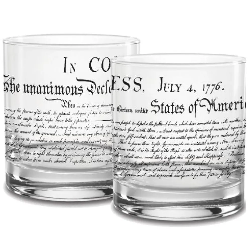Introducing our exquisite rocks-style glassware collection adorned with the profound words of the United States Declaration of Independence. Meticulously crafted and elegantly designed, these glasses embody the spirit of freedom and serve as a constant reminder of America’s founding principles. Made from high-quality glass, they offer a comfortable grip for savoring your favorite beverages while paying homage to the historical document that ignited the nation’s journey towards independence. Whether as a striking centerpiece or a meaningful gift, our glassware featuring the Declaration of Independence encapsulates the essence of patriotism and celebrates the enduring ideals that define the United States of America.