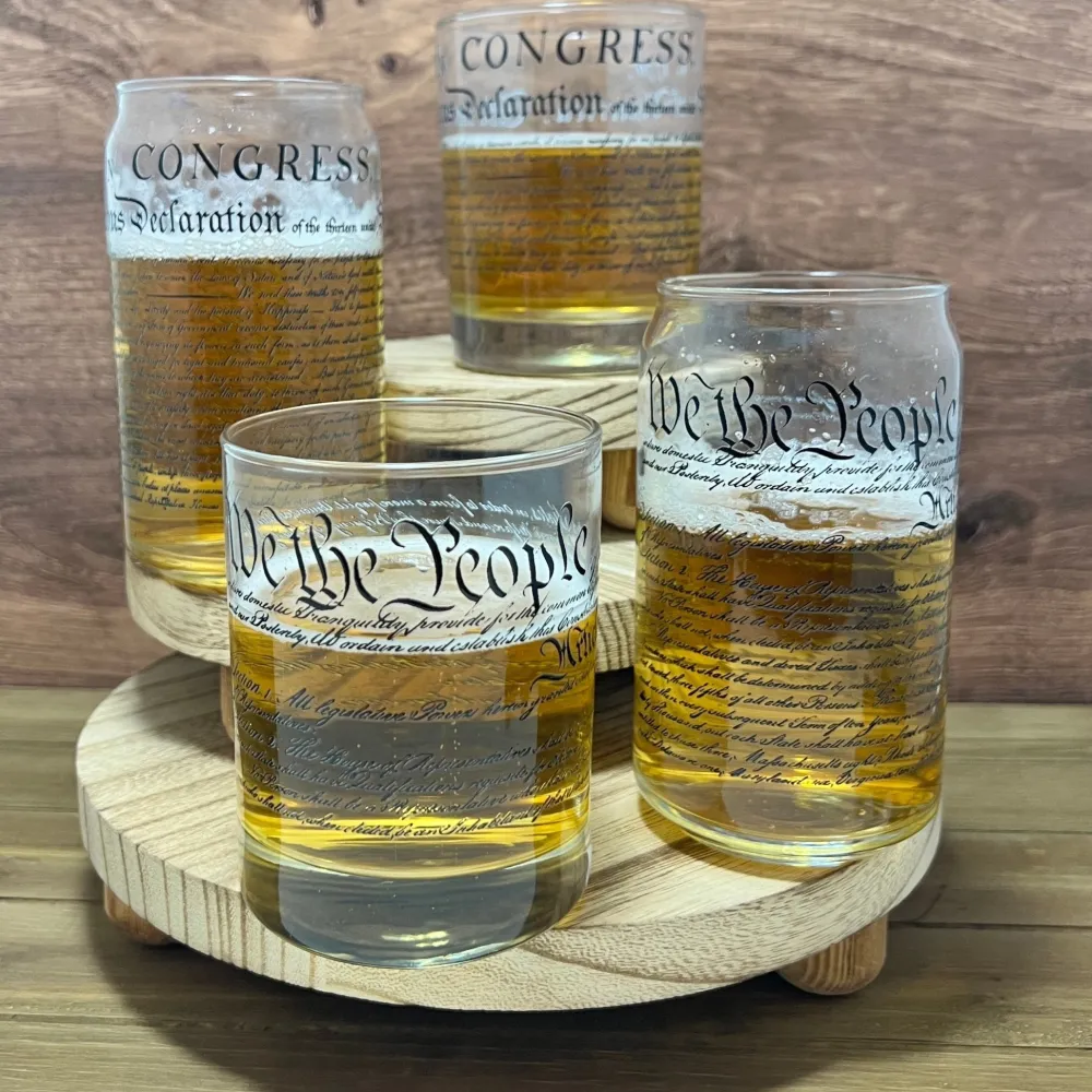 Introducing our elegant tall glassware collection, featuring the United States Constitution intricately engraved on each glass. Crafted with precision and reverence, these glasses embody the spirit of American democracy. Enjoy your favorite beverages while admiring the profound words that shaped a nation. Elevate your drinking experience with our remarkable glassware, a symbol of reverence for the foundational document that defines the American experience.