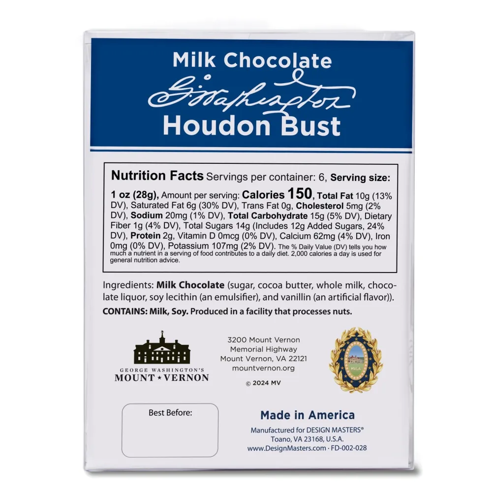 Celebrate George Washington with this exquisite 6.5 oz. milk chocolate bust, modeled after the iconic Houdon Bust displayed at Mount Vernon. Made in the USA, this delicious chocolate tribute captures the detailed likeness of America’s first president, making it both a delectable treat and a piece of art. Perfect as a unique gift or a historical indulgence, this Mount Vernon exclusive blends rich flavor with the timeless elegance of Washington’s legacy.