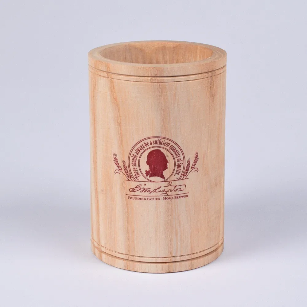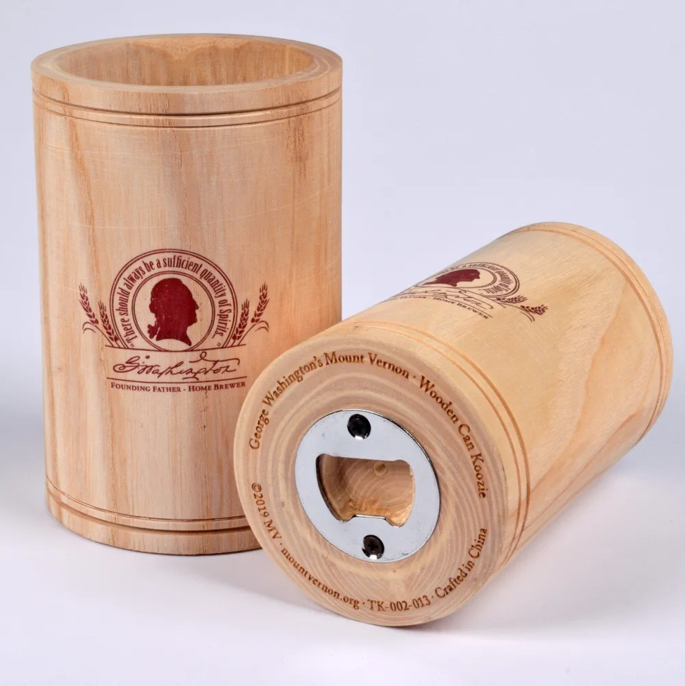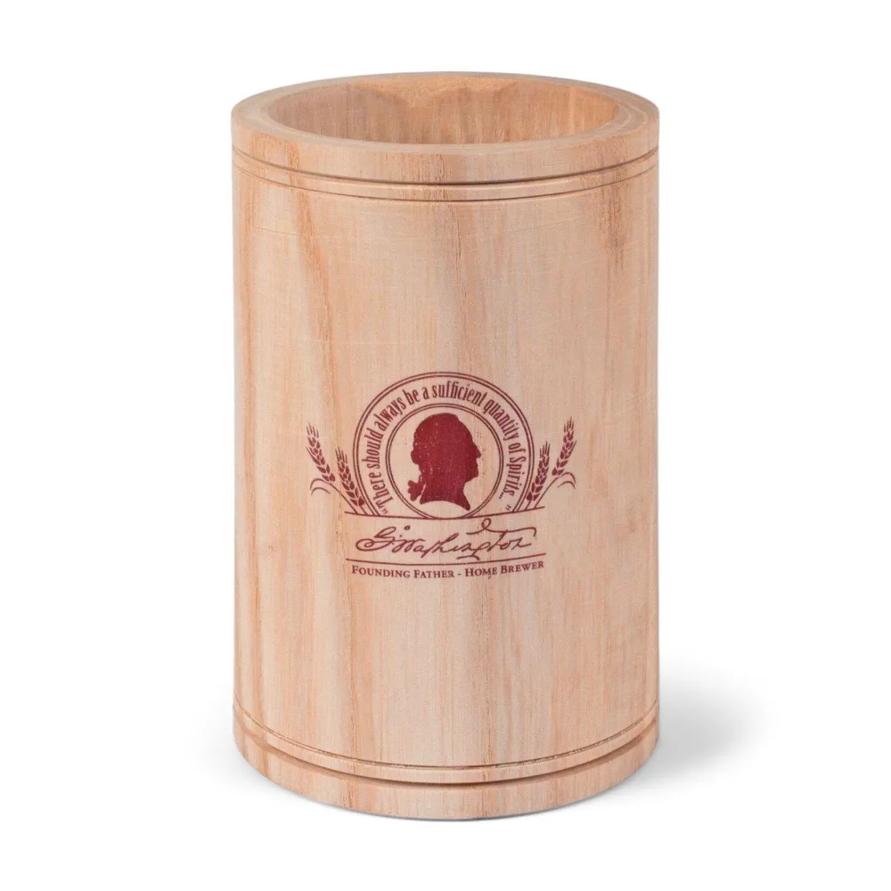 Drink your beer in style with this Woodzie custom made for Mount Vernon. The solid light-colored wooden insulating can holder is lined with cork rings and stamped with burgundy red designs of hops, George Washington’s unmistakable signature and portrait, the inscription Founding Father – Home Brewer, and his quote “There should always be a sufficient quantity of Spirits…” Cheers to that!