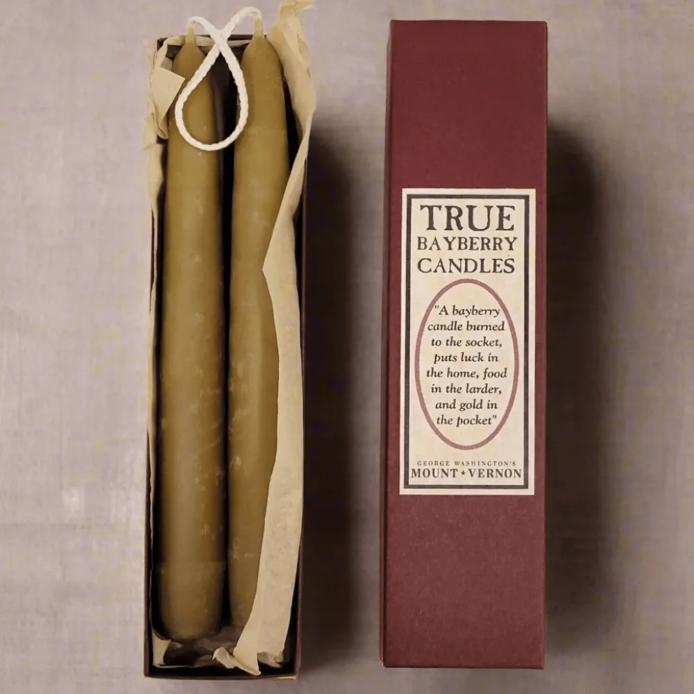 Genuine bayberry candles, made from the wax on the bayberry shrub, have been the traditional holiday candles since colonial times. Burned to the nub on Christmas Eve and New Year’s Eve, they bring good luck for the coming year.