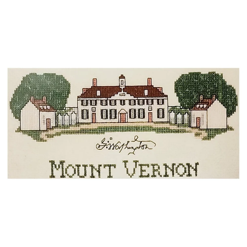 Mount Vernon West Front Counted Cross Stitch Kit. “No estate in United America is more pleasantly situated than this,” is how George Washington described his Mount Vernon home in 1793. Washington spent most of his adult life designing and improving the mansion overlooking the Potomac River. Hundreds of visitors came to Mount Vernon to meet Washington and admire his stately residence. The mansion achieved its present day appearance by 1799, incorporating such features as the cupola, colonnades, and dependency buildings.