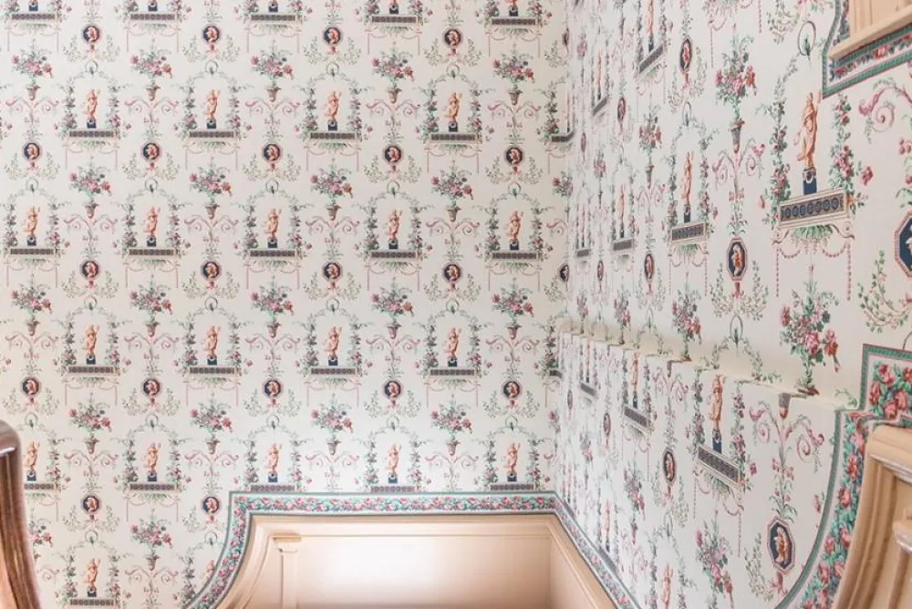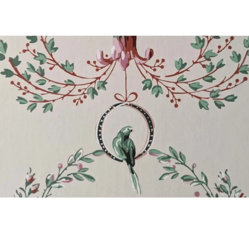 Inspired by the wallpaper in the upper central hallway of the Mount Vernon mansion. Mrs. Washington and her granddaughter Nelly owned many exotic birds such as parrots and cockatoos. Birds were a feature of life at Mount Vernon for at least three decades. As early as April 8, 1773, George Washington purchased a parrot from the Captain of a West Indian trading ship that stopped at Mount Vernon.