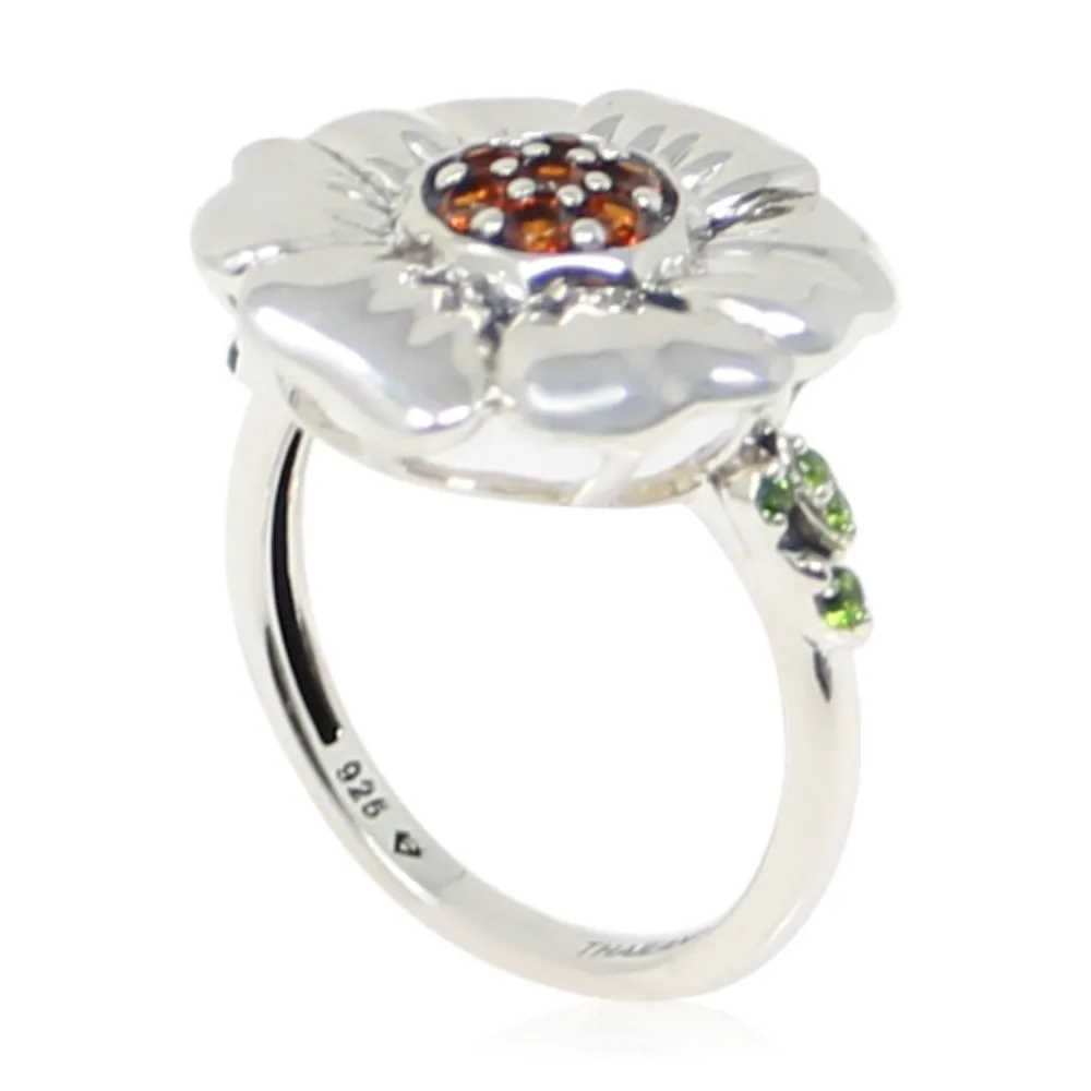 This flower sterling silver ring, inspired by decorations above the Front Parlor room fireplace on the first floor of the George Washington’s home, features garnets. Garnets were Martha Washington’s stone of choice for jewelry.