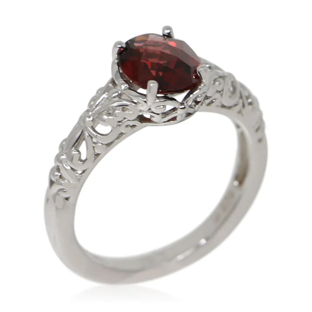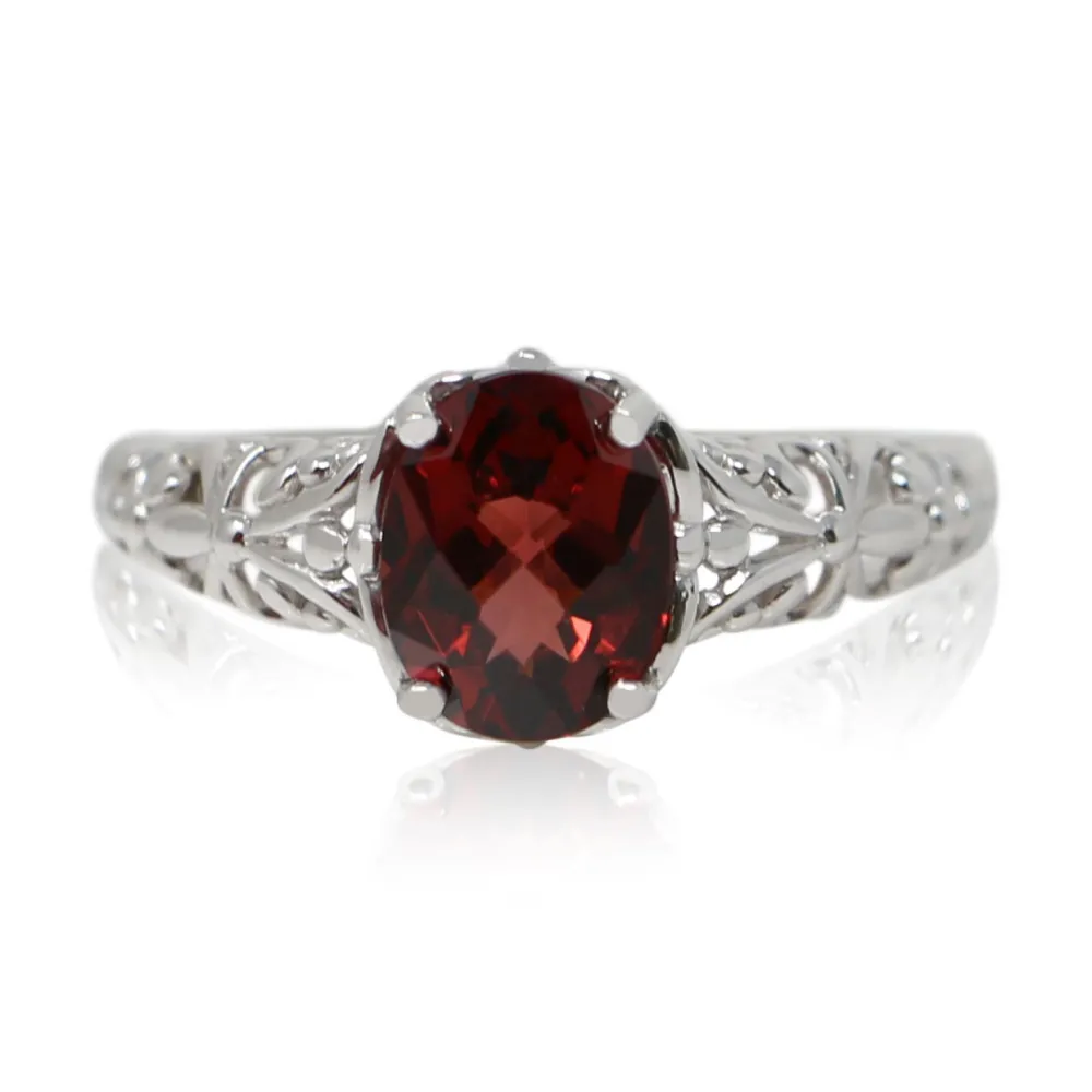 This beautiful sterling silver ring features a garnet and intricate designs reminiscent of the gardens at Mount Vernon. Garnets were Martha Washington’s favorite stones for jewelry.