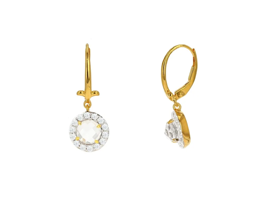 Each lever back earring showcases a rose-cut white topaz stone, carefully faceted to enhance its dazzling brilliance. The use of white topaz allows for an accessible yet sophisticated alternative to diamonds, making these earrings a perfect choice for those seeking affordable luxury. The design is inspired by the diamond ring that descended in the Fairfax family, which was originally created as a mourning ring to honor Lawrence Washington, George Washington’s elder half-brother.